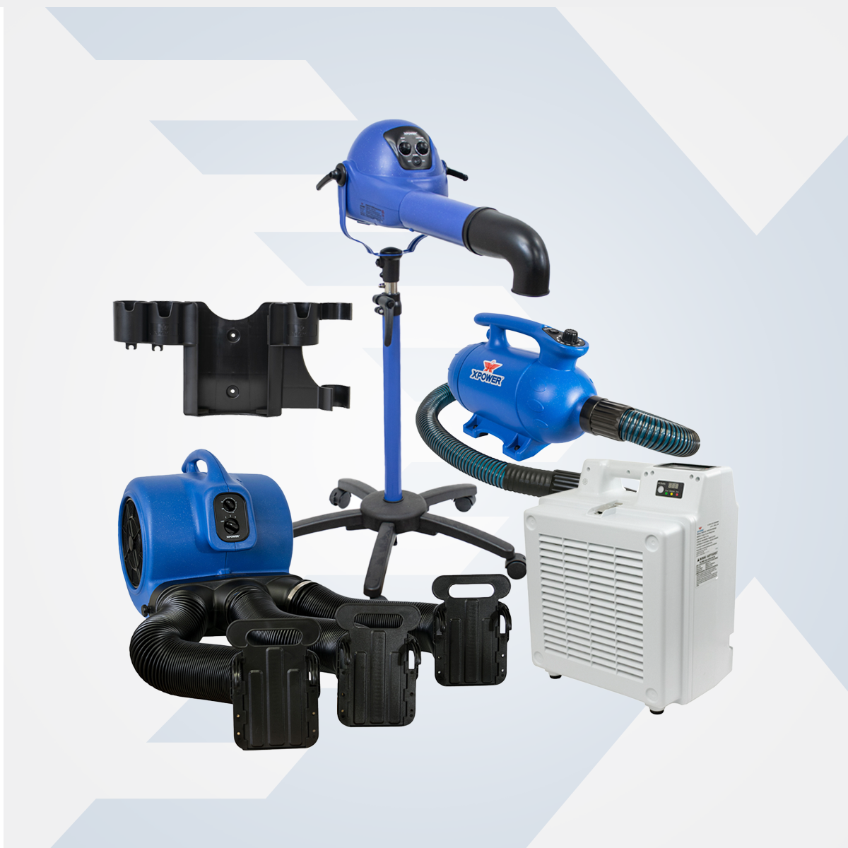 With a cage dryer in your arsenal, you're able to dry three dogs in cages while you're by the grooming table styling a fourth one. This is how all the popular grooming shops are able to book and accommodate so many dogs at the same time. XPOWER Cage Dryers is the top choice in time management drying tool. With the largest air volume in the market and included Multi-cage Drying Kit, this dependable tool allows groomers to instantly handle more business.